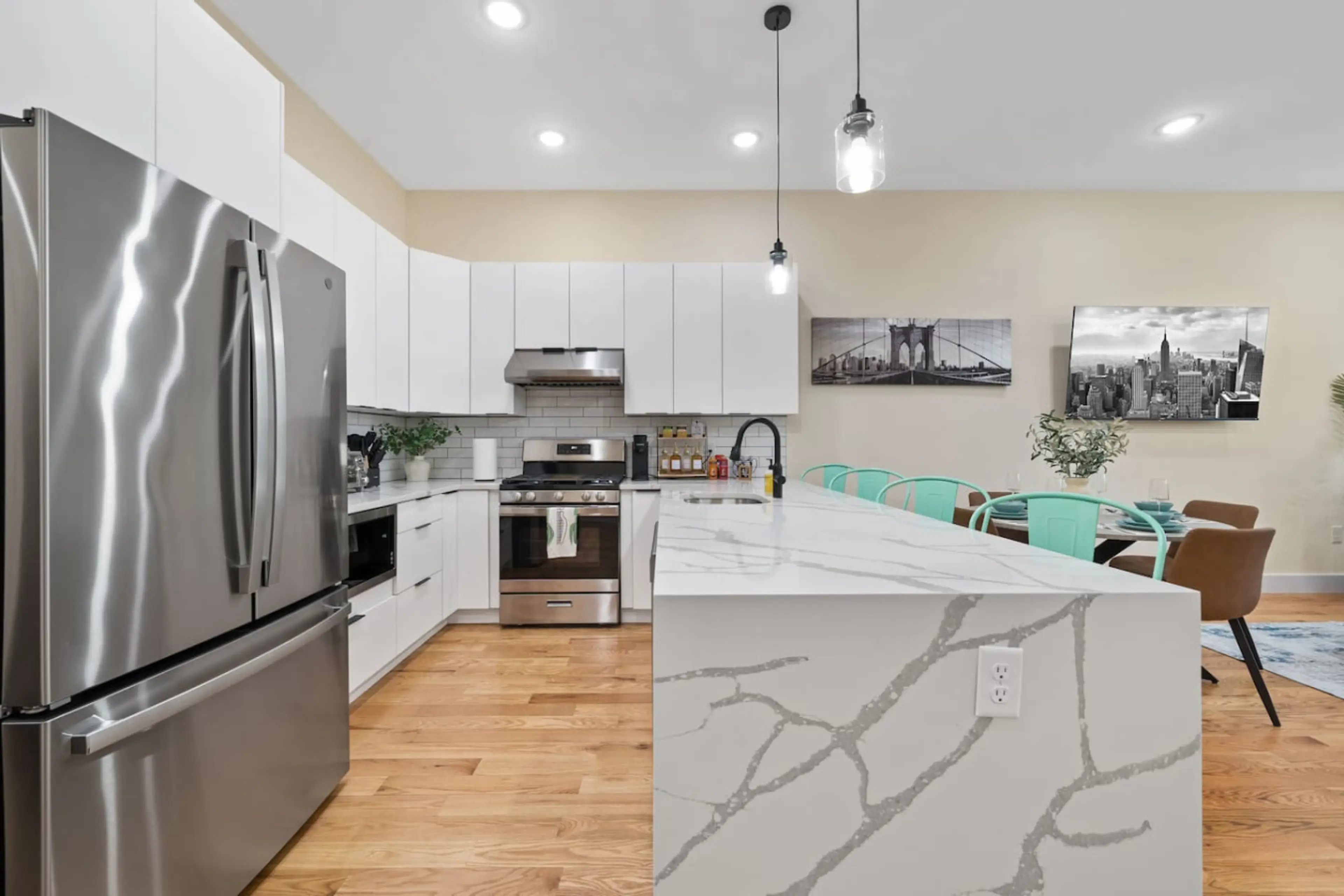 Experience the perfect blend of elegance and entertainment in our brand new luxury home, only 17 minutes from NYC! This spacious retreat offers an open-concept living and dining area, a fully equipped modern kitchen, and multiple cozy bedrooms for ultimate comfort. Level up your stay in the massive ...